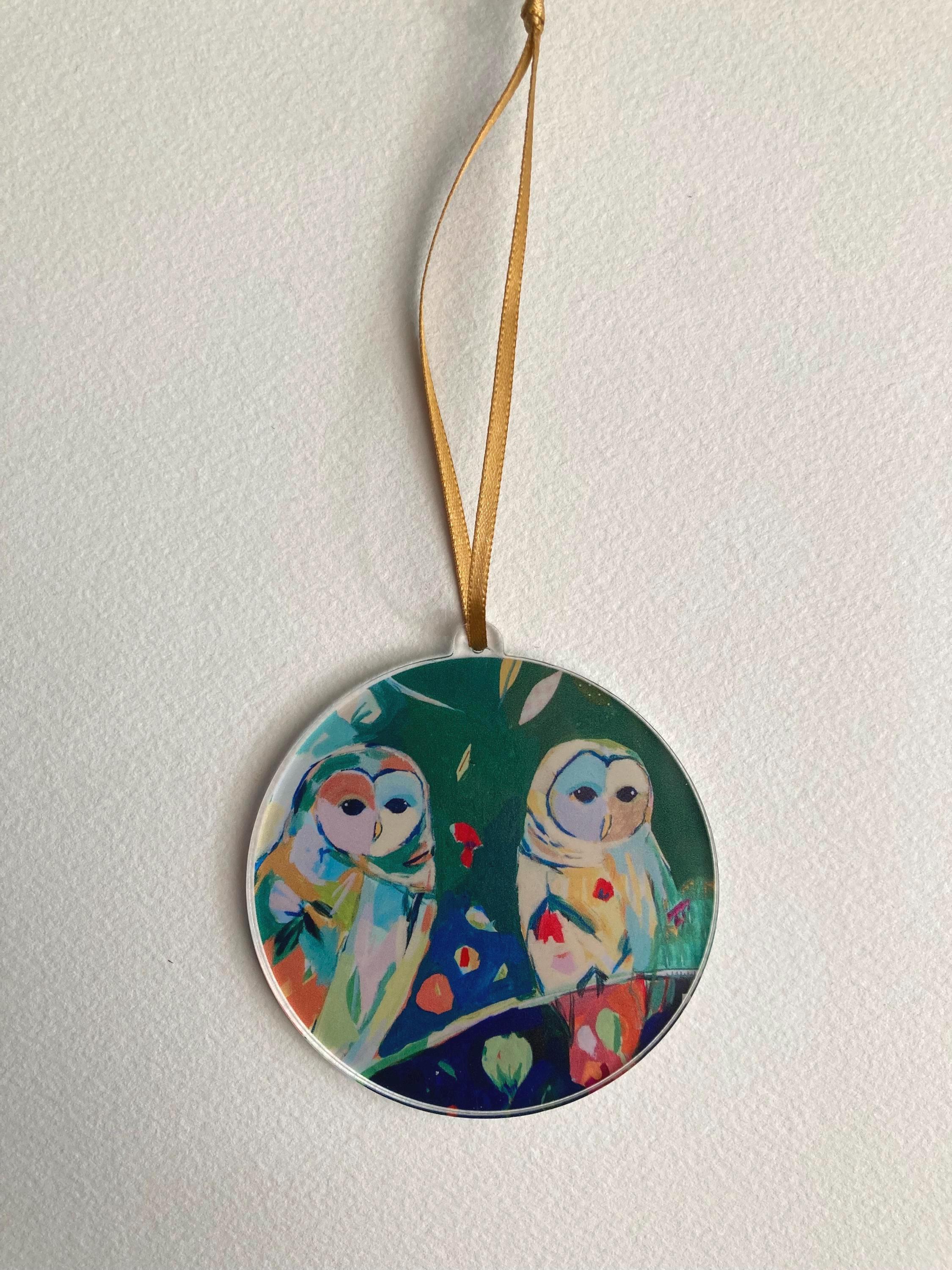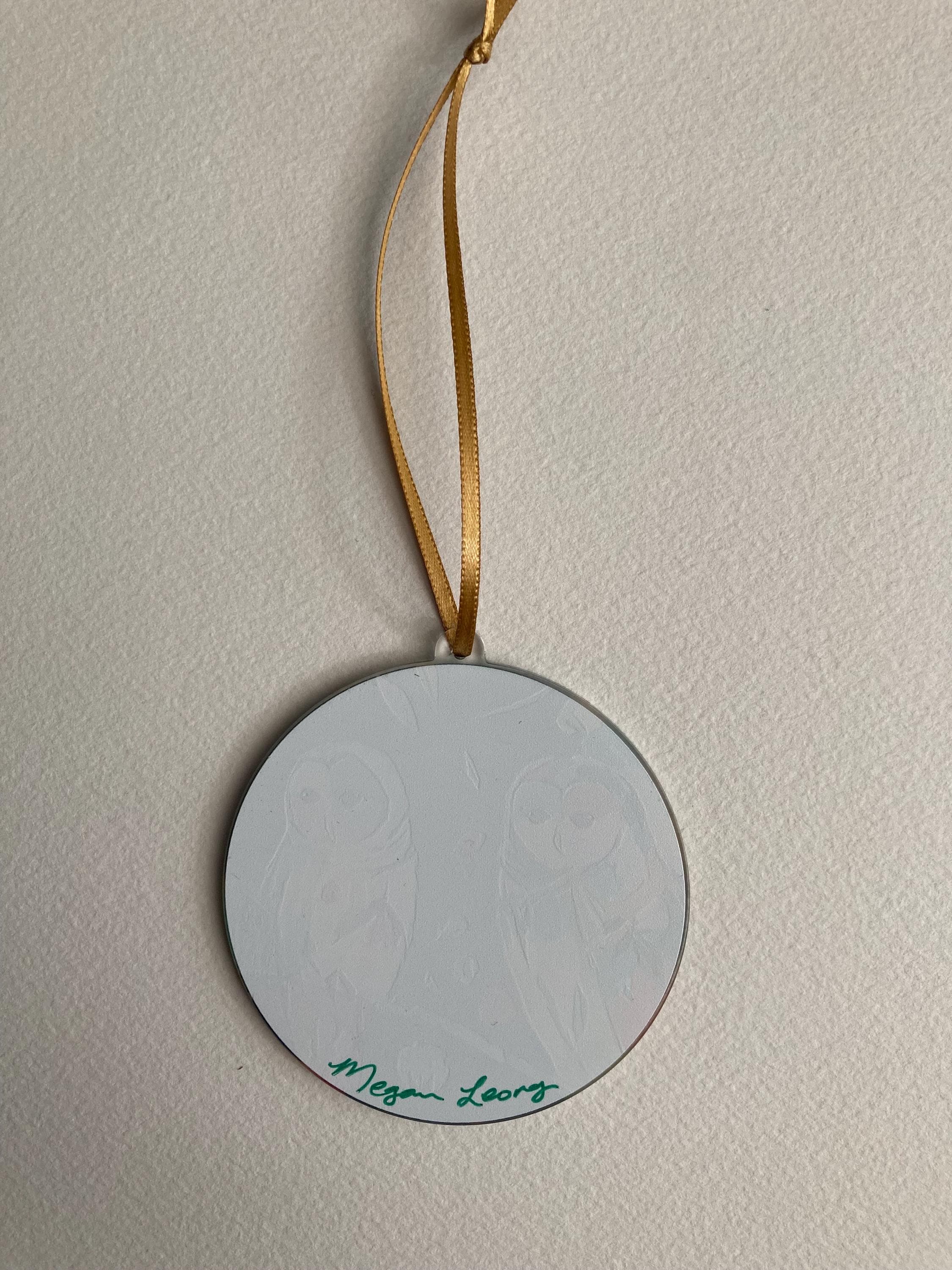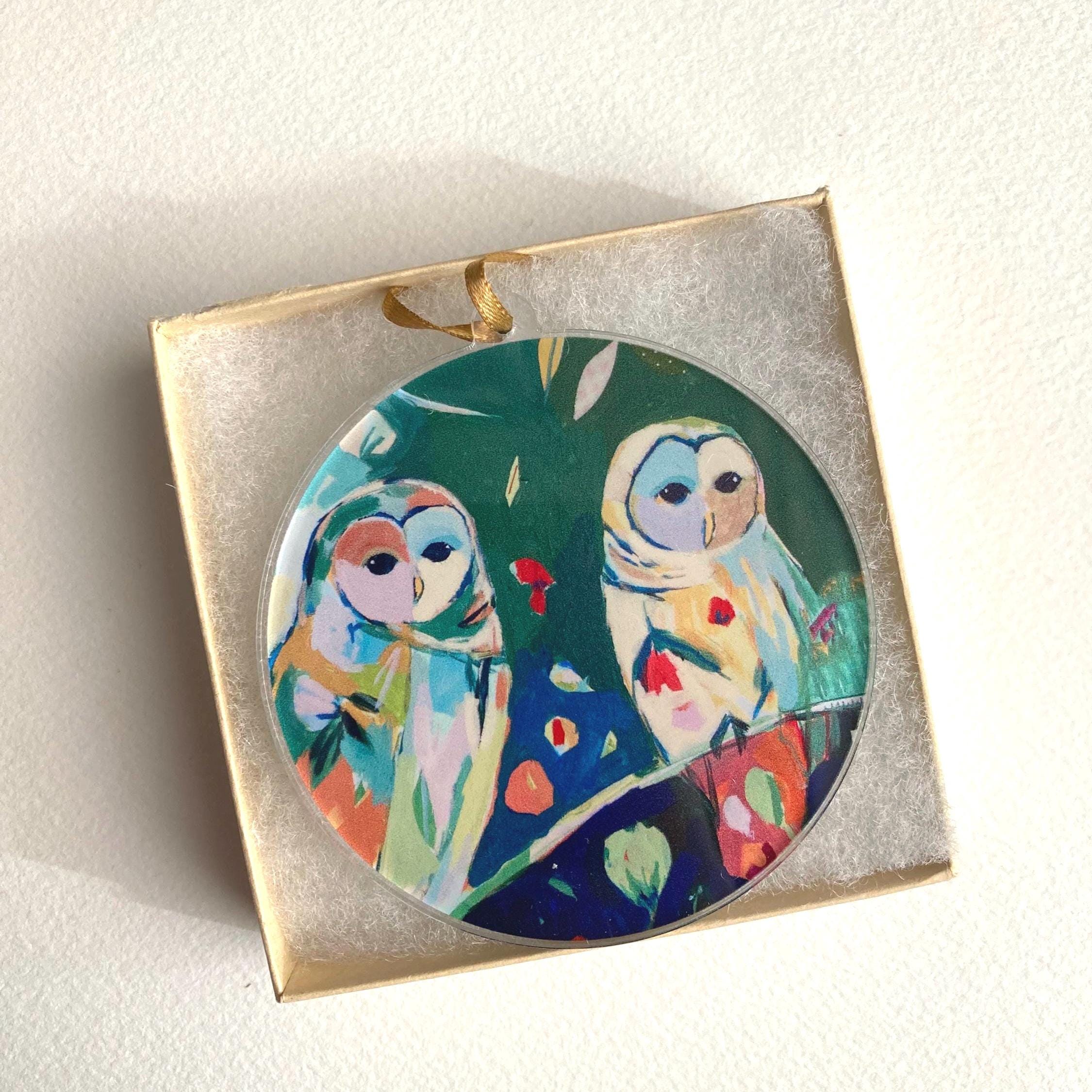 Ornaments feature an art print on the front side and are hand signed on the back. Each ornament comes packaged in a gift box.