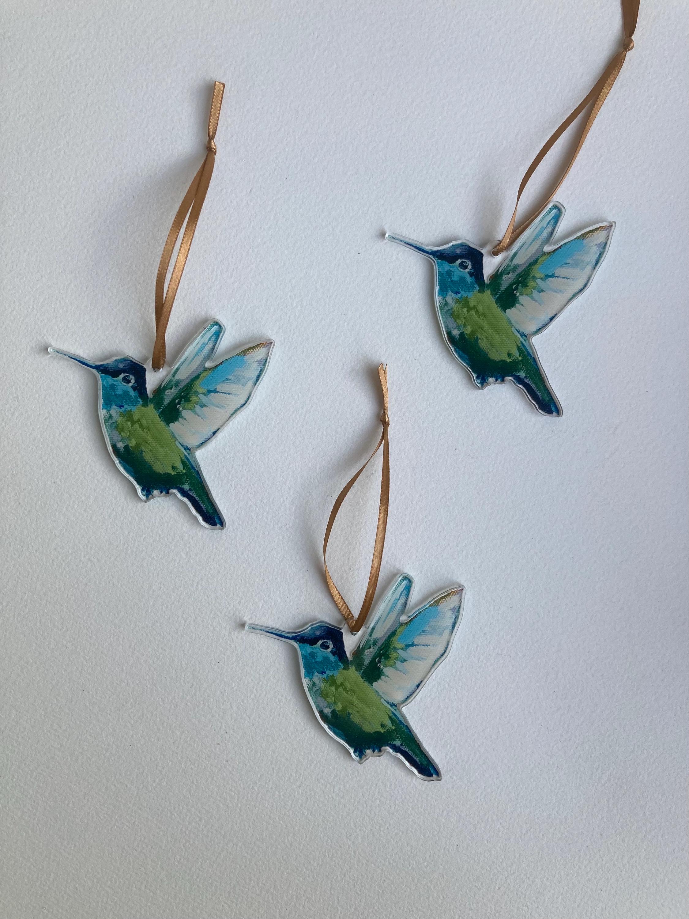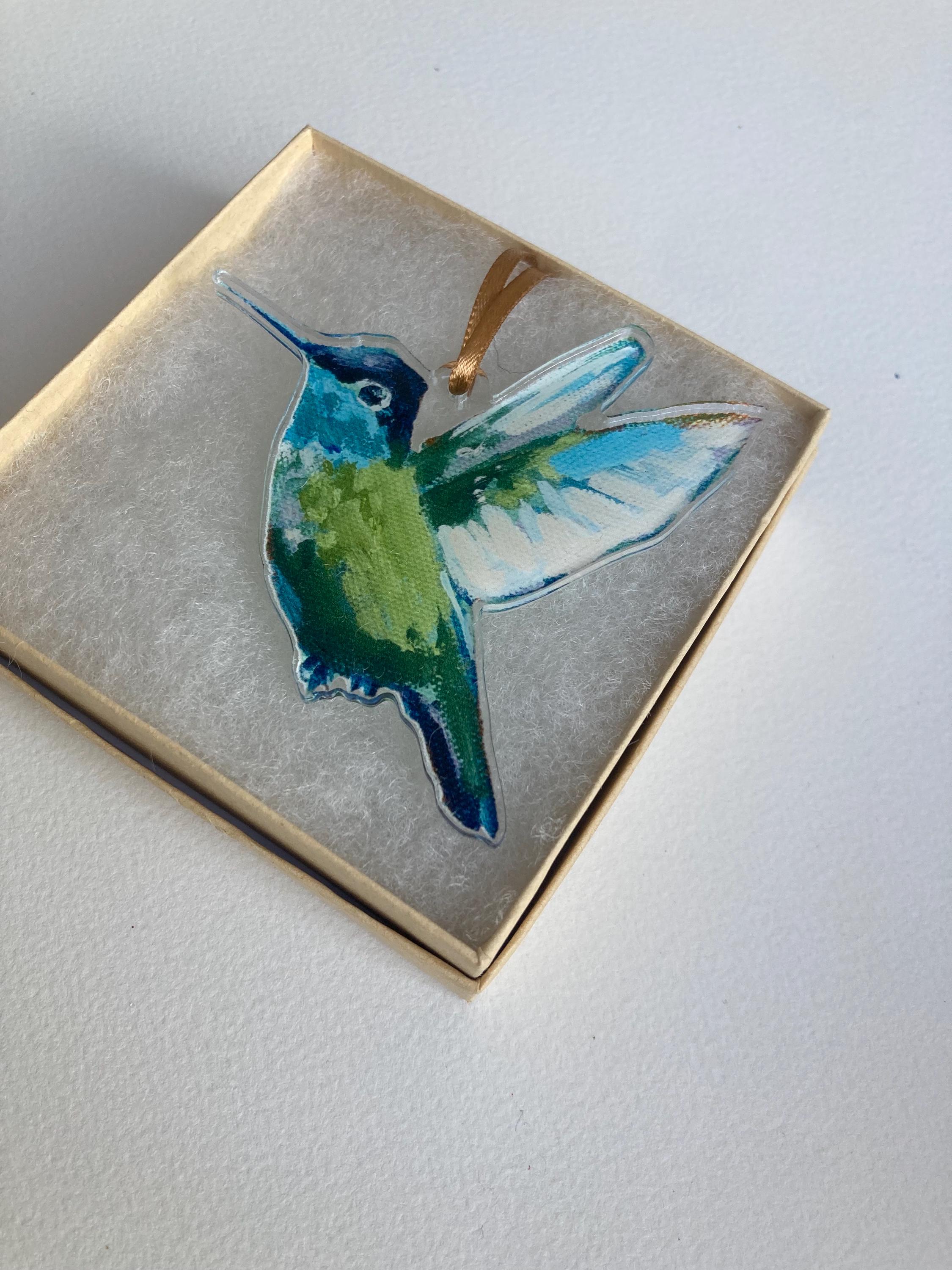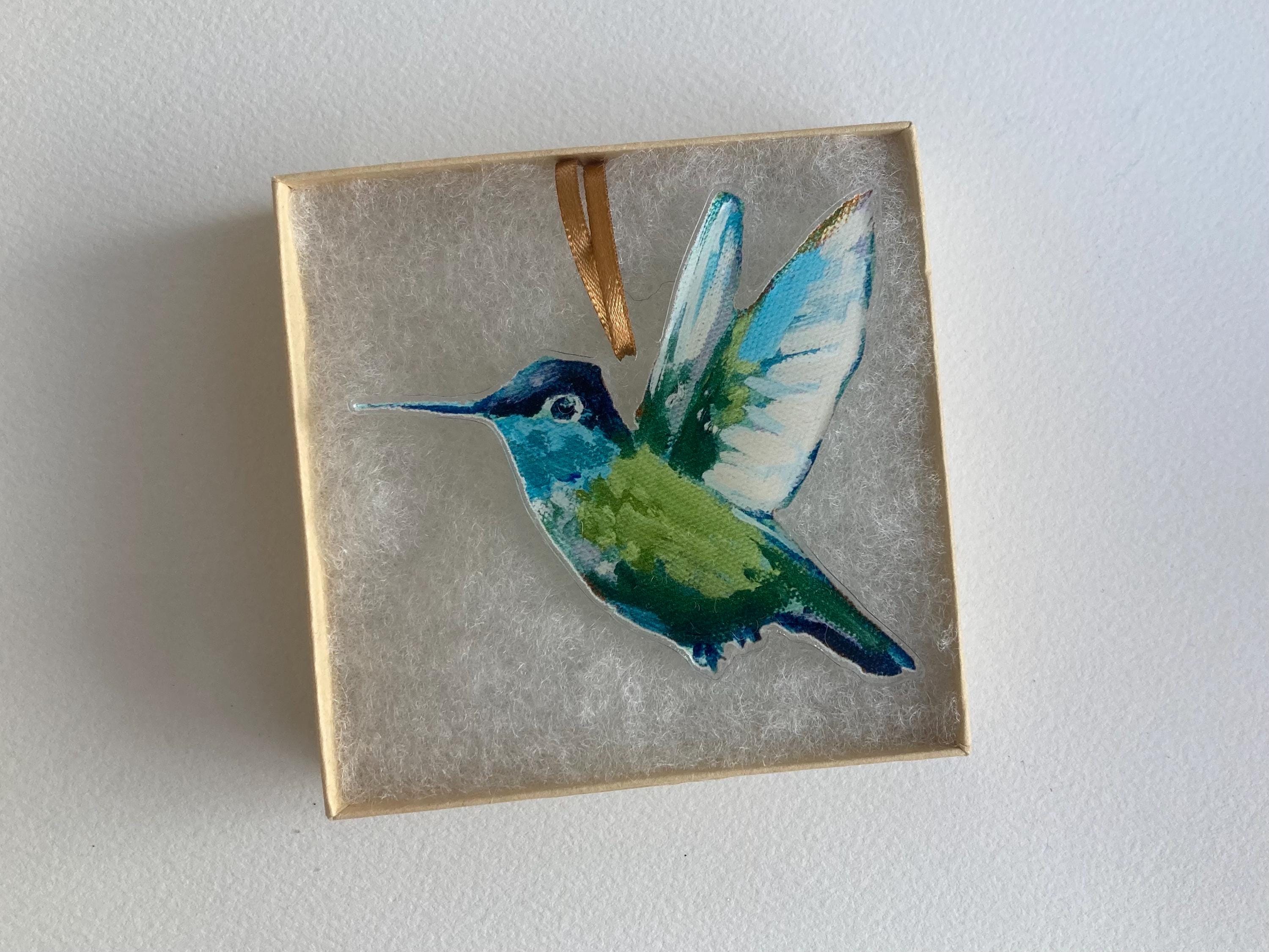 Ornaments feature an art print on the front side and are hand signed on the back. Each ornament comes packaged in a gift box.