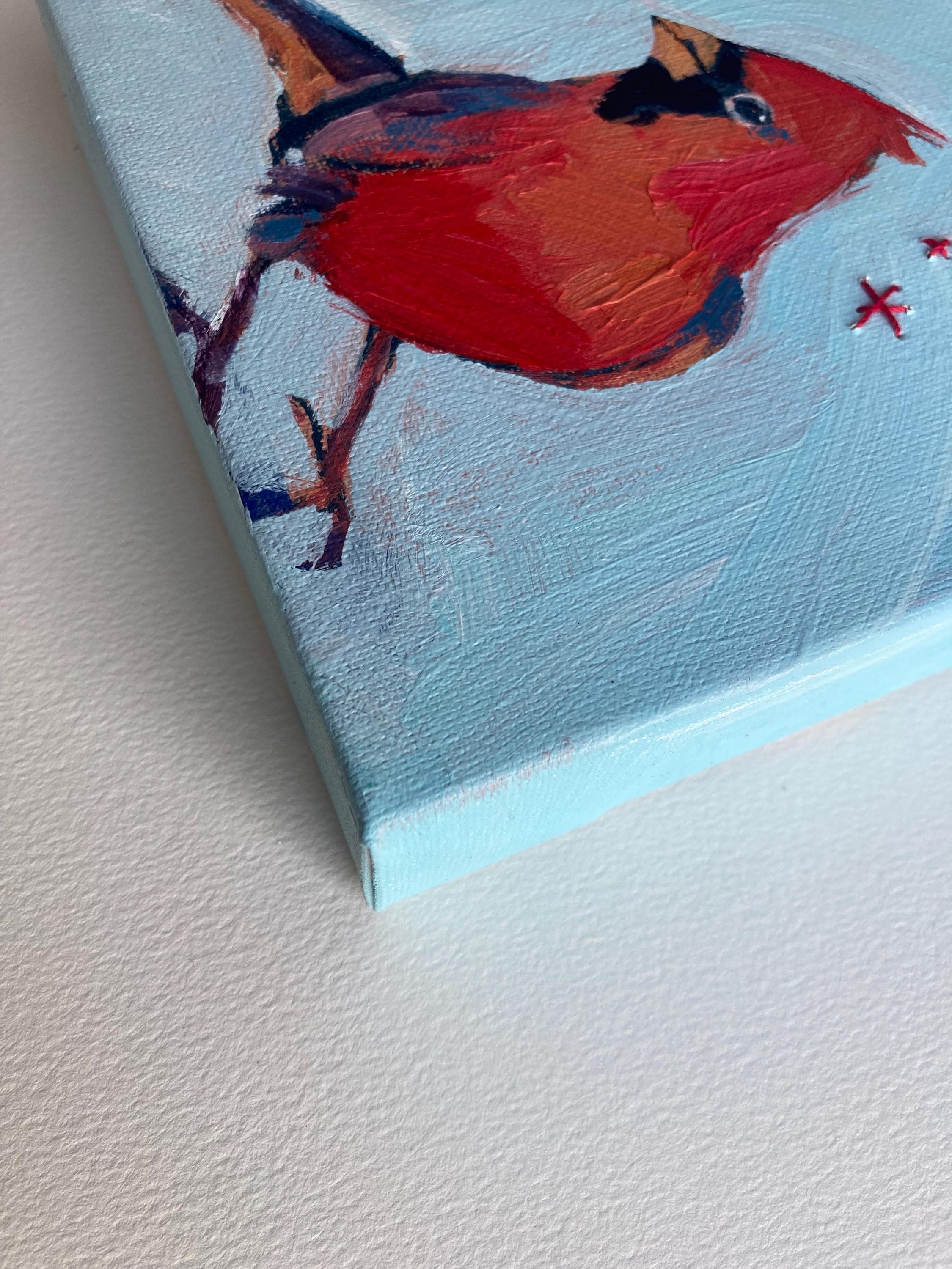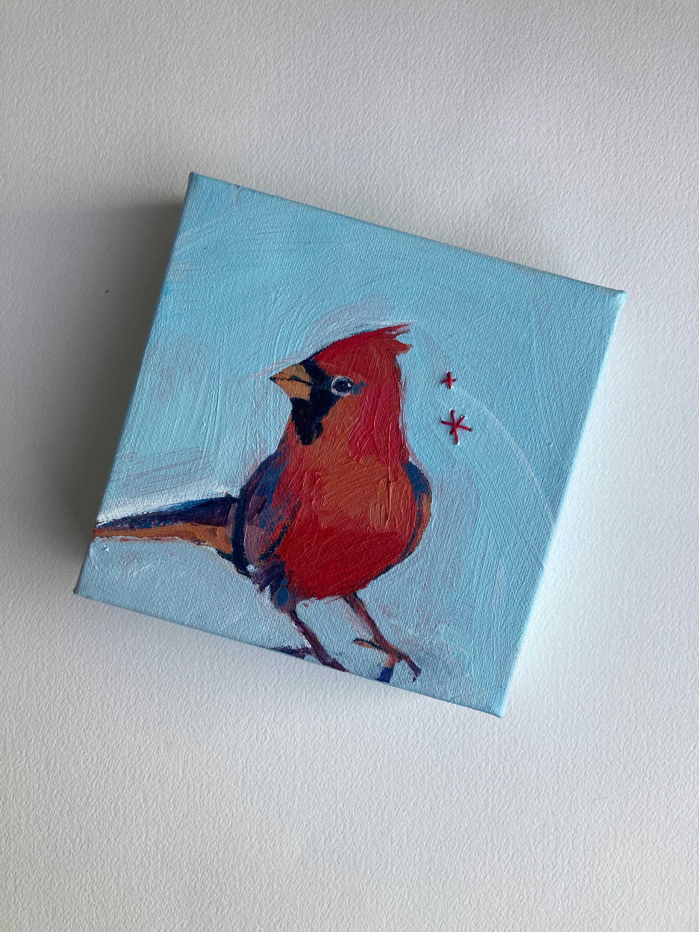 This piece is an original 6x6 inch painting on stretched canvas with 1.5" deep edges.
