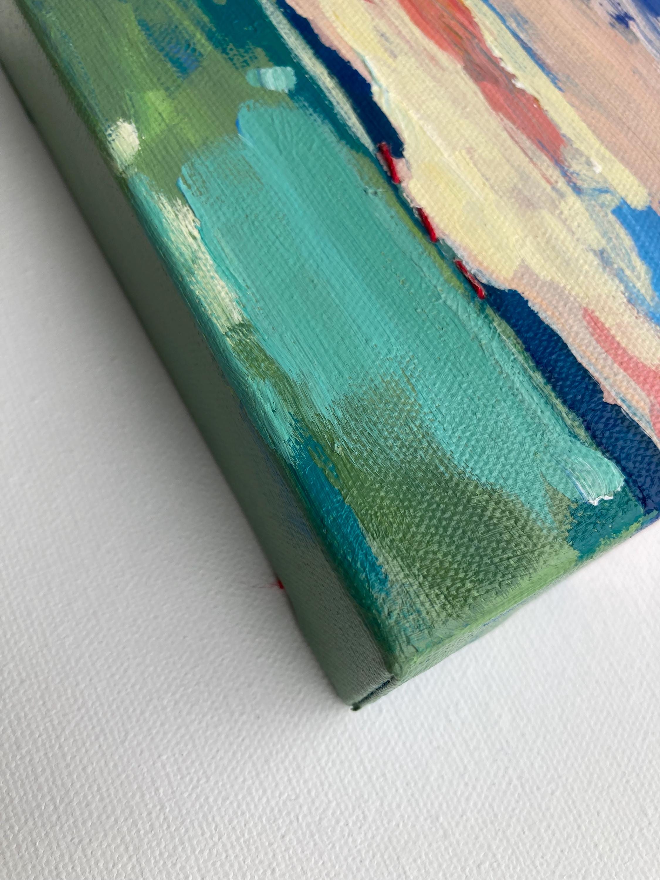 This piece is an original 6x6 inch painting on stretched canvas with 1.5" deep edges.